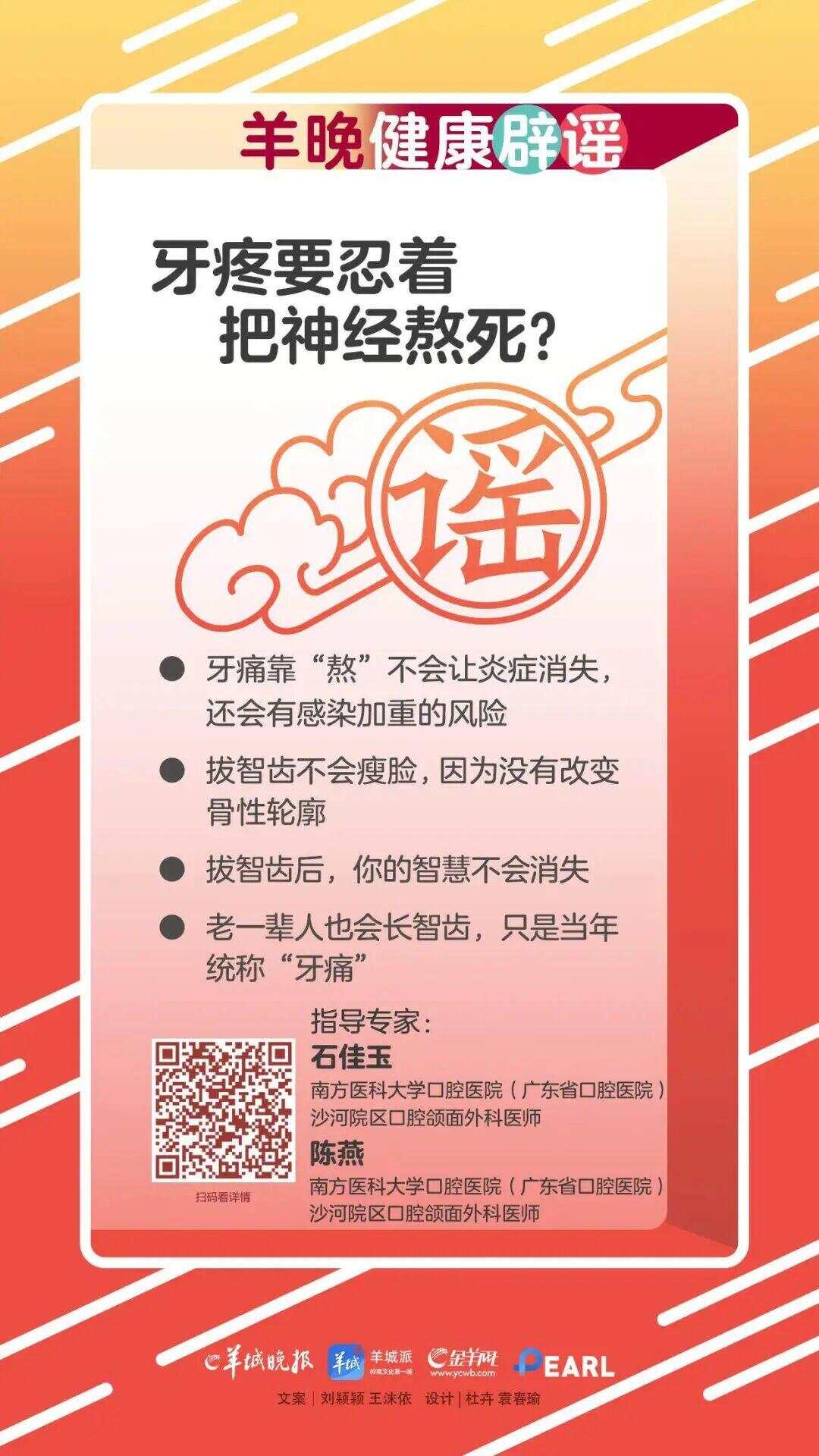 不要相信这些关于智慧牙齿的谣言:“如果您忍受牙痛,直到您死亡,您的神经就不会受伤?” “去除智慧牙齿后,你会失去智慧吗?” “去除智慧牙齿后,你可以失去智慧吗?” “为什么老一代似乎从未有过智慧的牙齿?”关于主要社交平台上的智慧牙齿有很多谣言。在这些问题中,记者采访了Shahe校园的口腔和上颌面外科医生Shi Jiayu,南部医科大学牙科医院(广东省牙科医院)和首席护士Chen Yan。他们提供了专业的答案。谣言1:如果您忍受牙痛,您的神经将得到治愈。医生提醒您,牙痛不会通过“苦难”解决问题。 Shi Jiayu说牙齿和疼痛炎症是有害的。在温和的情况下,该疾病无法进食,在严重的情况下,会发生系统的感染。延迟“痛苦”将不允许发炎,但会插入ASE有恶化感染的风险。建议在发生牙痛症状时寻求治疗。谣言2:去除后智慧牙齿将消失。 “智慧牙齿之所以被称为智慧,是因为它们通常在16至25岁时出现在智慧的顶峰,但与智商无关。” Chen Yan解释说,智慧的牙齿只是普通的牙齿,而获取不会影响人们的智慧和知识。谣言3:老一代没有卡伦南的牙齿吗?当然,老一辈也将有智慧的牙齿。但是,过去,牙齿和治疗的诊断尚未像今天这样划分。人们经常呼唤“牙痛”牙齿炎症引起的疾病,因此很容易忽略。谣言4:智慧牙齿可以用来薄脸吗? “不。” Shi Jiayu强调,面部的外观主要取决于下颌的外边缘,而智慧牙齿在T上更长他下巴的内边缘。去除智慧牙齿不会改变骨骼轮廓,因此毫无疑问“脸部纤细”。热提醒并非每个人都应该去除智慧牙齿,但是如果反复发炎,难以清洁或对邻近牙齿造成损害,医生建议按时将其取出。不要相信无统治的谣言,也不要盲目延迟。来源|扬昌晚间新闻,扬昌帕,jinyang.com封面|视觉中国记者| Liu Yingying和Wang Moyi海报| Du Hui和Yuan Chunyu